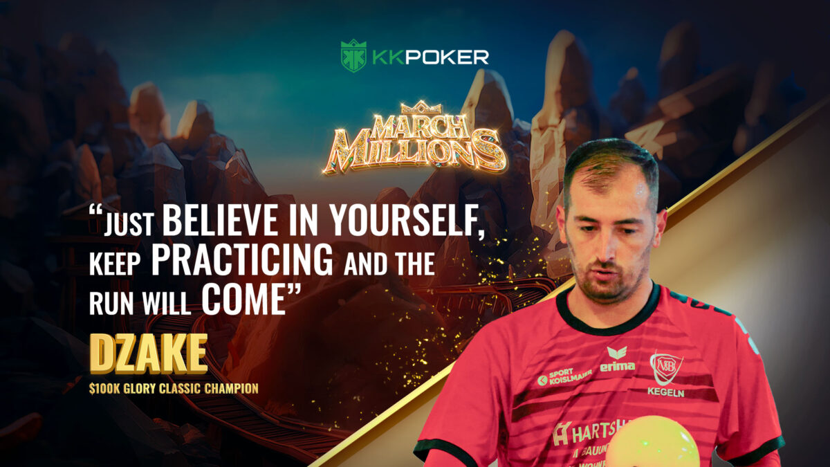 Para DZAKE, quien disfruta lo mejor de ambos mundos, jugar póker por diversión y competir como deportista profesional, el March Millions fue otra oportunidad para competir por grandes premios. Tras ganar su ticket a través de un torneo satélite, necesitó toda su experiencia y algo de suerte para convertirse en campeón.